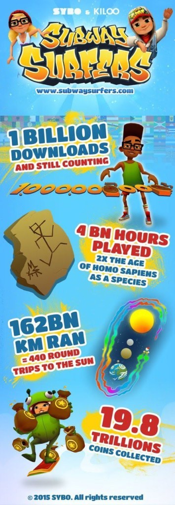 Sicuramente un risultato meritato che permetterà alla Kiloo di realizzare tanti nuovi scenari. Subway Surfers ha debuttato su Android nel 2012 e solamente 3 anni dopo è riuscito a raggiungere questo straordinario traguardo. Vi lasciamo ad un’infografica e al badge per il download: