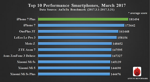 AnTuTu svela quali sono i dispositivi in grado di assicurare le prestazioni più soddisfacenti tra quelli presi in esame durante il mese di marzo 2017.