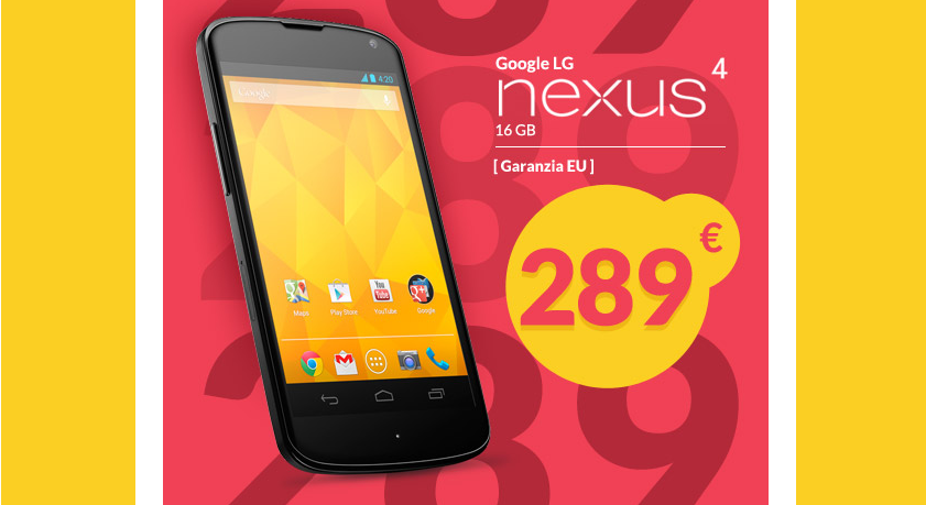 Su Gli Stockisti continuano i superprezzi che vedono ancora una volta protagonista il tanto amato Google (LG) Nexus 4 nella versione da 16GB con garanzia Europa a soli 289 euro.