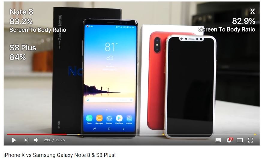 iPhone X superiore proprio no, poi con quella banda nera e lo schermo cornuto fa proprio schifo. E cmq in percentuale l’iPhone X ha meno display e più bordi di S8, S8+, Note 8 e V30, sono uscite le comparazioni ieri.