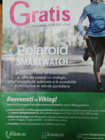ciao a tutti, con un ordine di 49,00 euro + iva viking regala uno smartwatch polaroid. Cosa ne pensate!? Non ho trovato neanche una video prova...