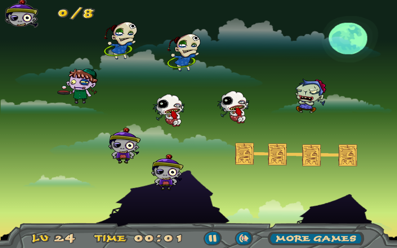 Zombie Charm is a fun puzzle game, based around chines zombies and the charm cards that cure zombies to turn them back to human. Your aim in this game is to place the charm cards on each side of the kids to create a line connection between them and this will cure the kids from zombies and turn them in to normal kids it sounds confusing but give it a go and you'll soon get the hang of it and you'll be playing it for hours .