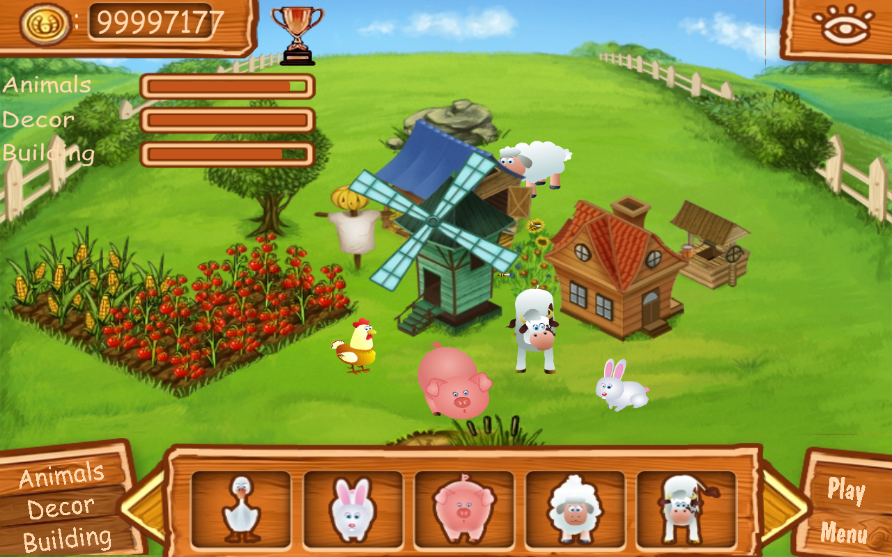 Playing match3 you earn coins to build your own farm. You choose to buy any of the