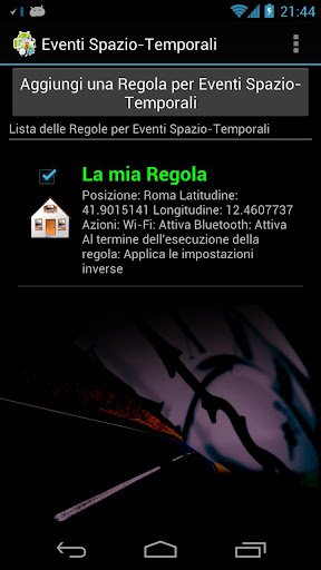 Scegli un intervallo di tempo e/o una posizione e delle azioni da compiere ed Events Settings le eseguirā in base alle tue indicazioni.