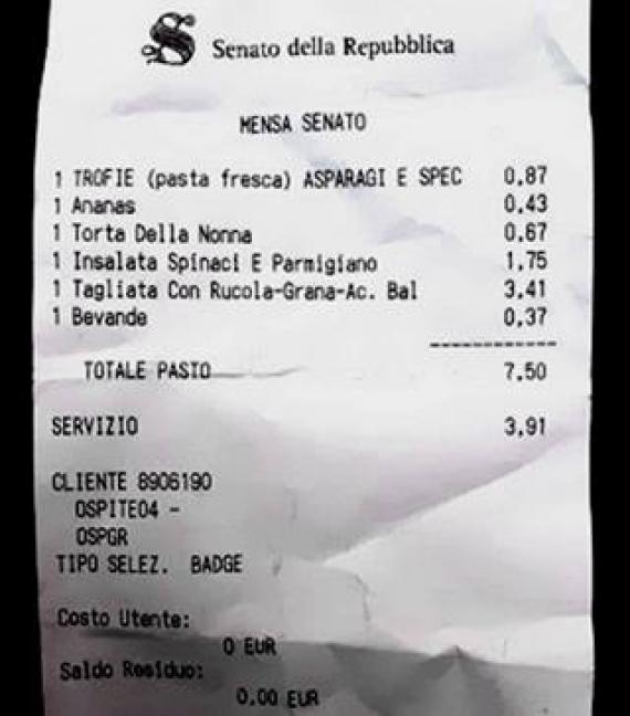 avevo un dubbio sullo scontrino "politico", ho guardato meglio... non è fiscale e avete visto il numero cliente? 9 milioni di scontrini evasi per un ammontare di 70 milioni di euro che abbiamo pagato noi da quando c'è l'euro, 70.000.000 di euro di cui non è stato pagato 1 centesimo di tasse... e la cifra è molto approssimativa perchè non si sa quando sia stato fatto quel conto, può essere anche vecchio di anni