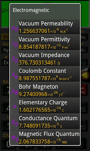 Ovviamente ha anche una tavola delle costanti fisiche (divise per categorie) e un convertitore di unità.