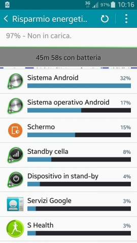 Buongiorno sono normali secondo voi questi consumi iniziali? 45min e sono scesi 3%di batteria ; lho usato un attimino su whatsapp. Ma se guardate ci sono i sevizi google ed sealth attivo che io non ho usato questa mattina.Come mai risultano nello screenshoot del consumi?