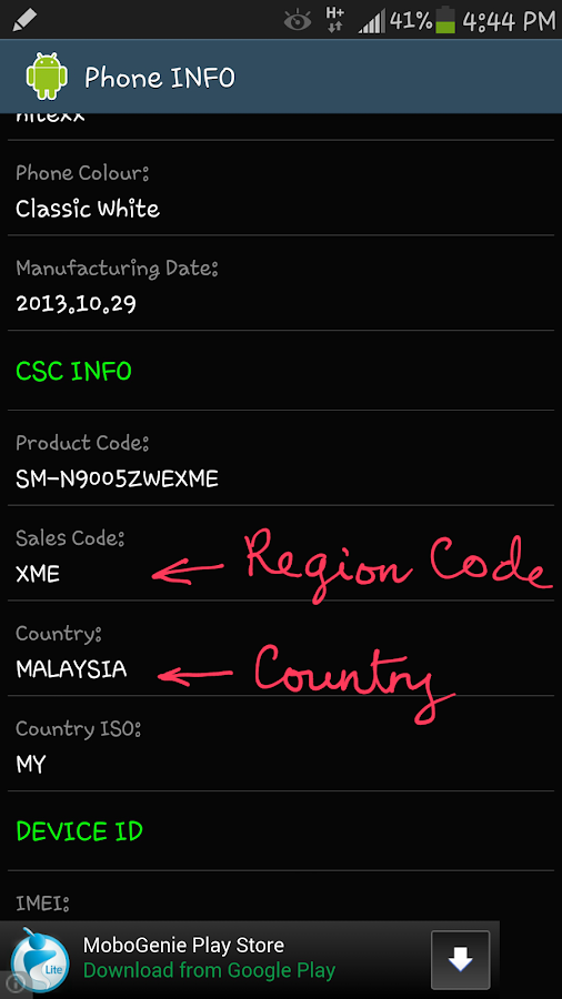 Invece di chiedere CSC e codici vari BASTA usare questa APP che fa vedere la nazione dello smartphone samsung: