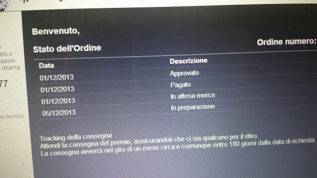Io ho fatto l'ordine il 1 dicembre e oggi dice: 05/12 in preparazione.
