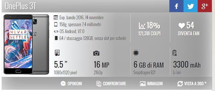 Per chi se le fosse perse, ecco le specifiche di OnePlus 3T: