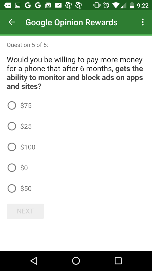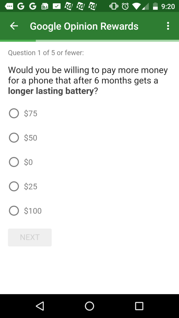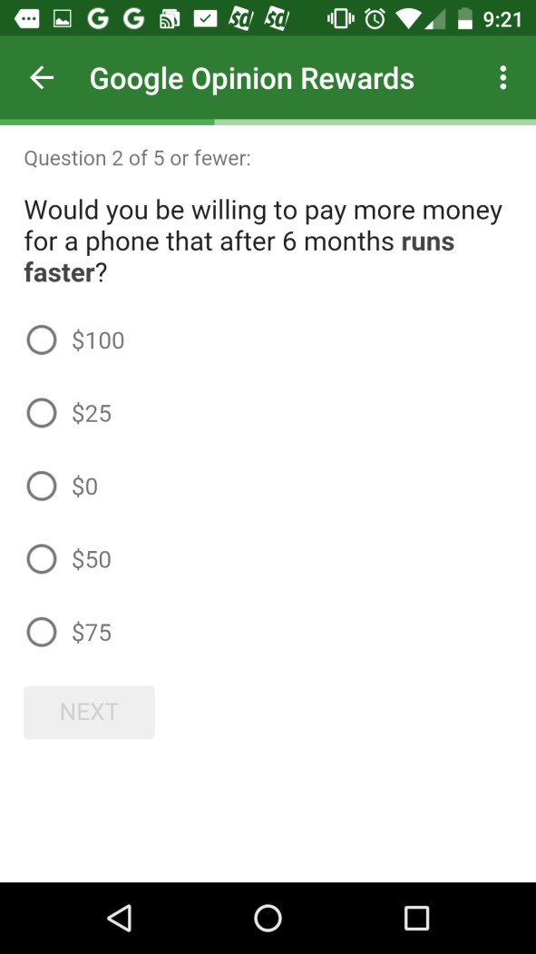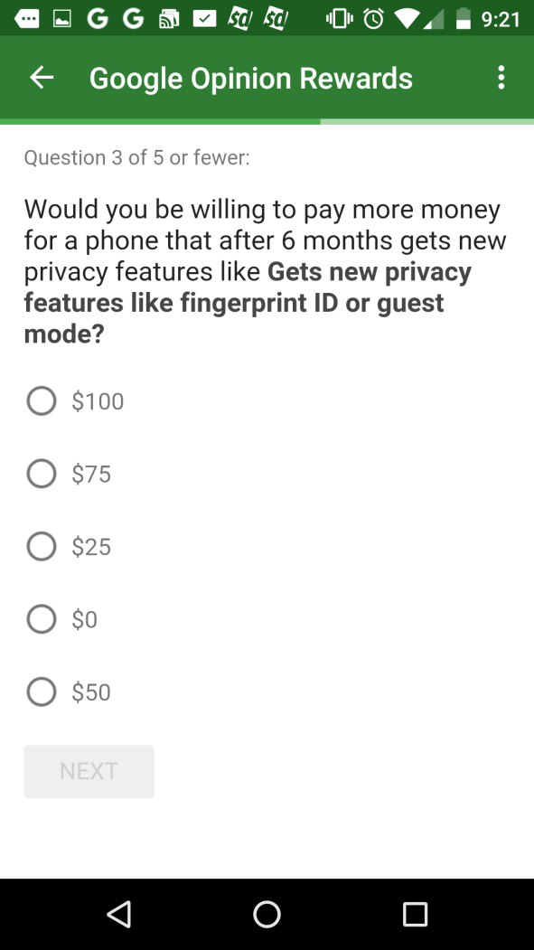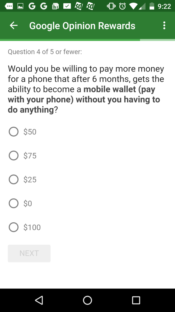 Agli utenti viene infatti chiesto quanto sarebbero disposti a pagare in più per uno smartphone che dopo 6 mesi sia in grado di avere una batteria più capiente, un processore più veloce, e via dicendo. Le opzioni sono comprese tra zero e 100 Dollari e molti ipotizzano che il sondaggio sia rivolto in realtà a capire quanto l’utenza vorrebbe spendere per un determinato modulo.