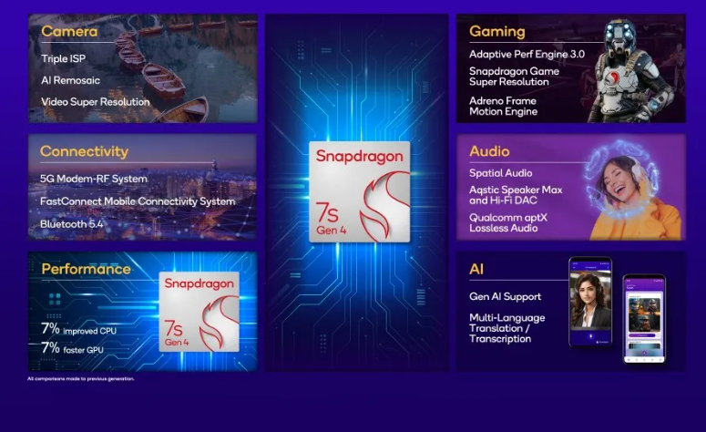 Quasi un anno dopo il lancio del suo predecessore, Qualcomm svela il nuovo Snapdragon 7s Gen 4, pensato per il segmento mid-range e con un occhio alle capacità AI.