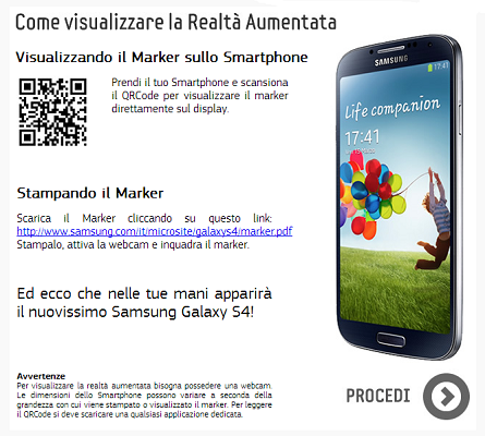 Samsung ha messo in atto un’iniziativa davvero interessante per pubblicizzare il proprio Galaxy S IV. Se non vi sono bastati i video, le immagini e quant’altro, l’azienda vi offre l’opportunità di provare “un vero e proprio” smartphone grazie alla realtà aumentata!