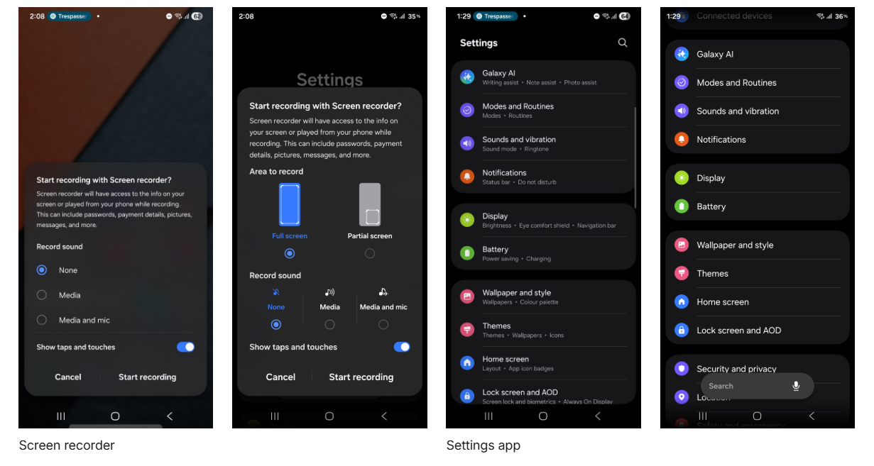 • Il menu del registratore dello schermo è stato ridisegnato con pulsanti più grandi e icone dedicate che chiariscono la funzione di ogni opzione.