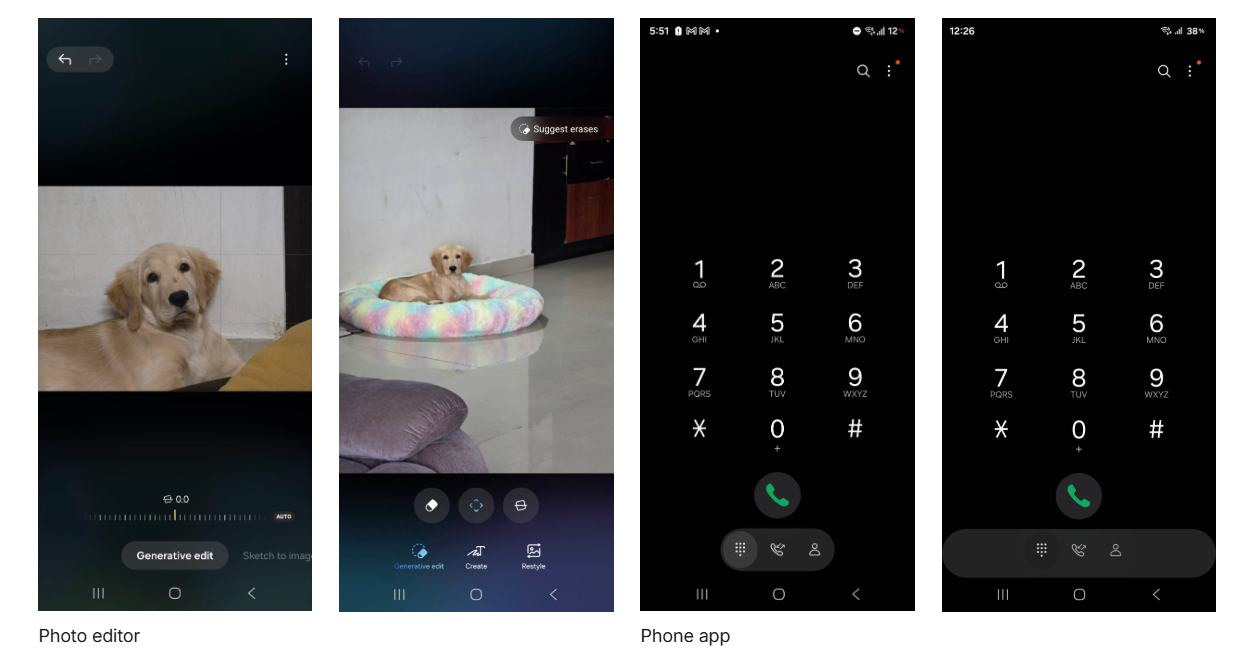 • Nel menu di modifica foto con Galaxy AI presente in Galleria, la grafica è stata aggiornata, mentre la barra di navigazione inferiore mostra ora tutte le schede disponibili senza richiedere lo scorrimento laterale.