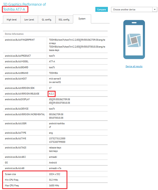 Il segmento dei tablet da 7 pollici sembra pronto ad accogliere un nuovo elemento: il Toshiba AT7A è l'ultimo dispositivo avvistato in rete, per la precisione su GFX Benchmark e AnTuTu.