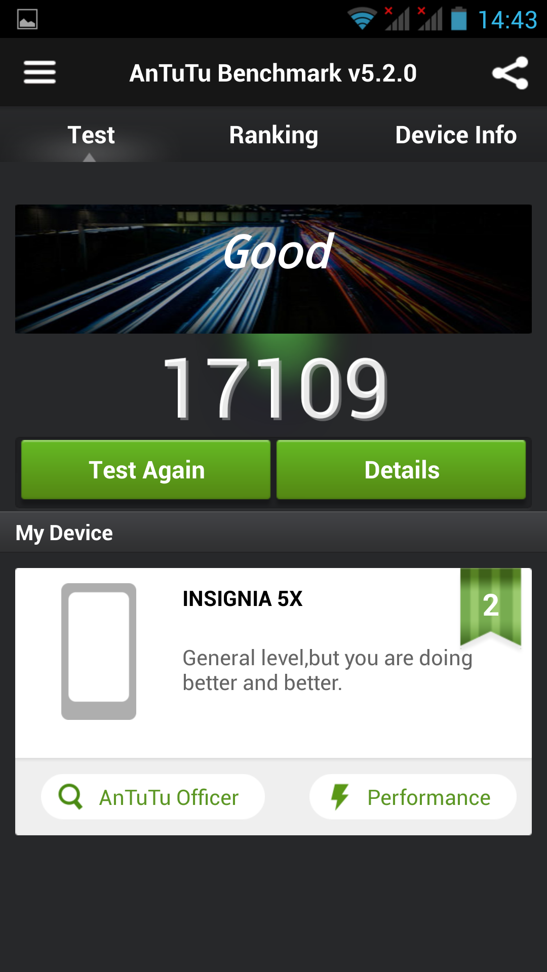 Volendo tirare le somme, questo device, si inserisce nella categoria dei Low-end device, ma di “low” non ha sicuramente il prezzo. Stiamo parlando di una fascia che si aggira attorno ai 200-230€. Il problema fondamentale è che presenta una versione di Android “arretrata” rispetto ai prodotti della concorrenza che potreste trovare al medesimo ( o inferiore) prezzo. Questo è uno svantaggio che potrebbe essere colmato dal produttore con un OTA repentino che porti la versione del robottino, almeno a KitKat. Ciò che, invece, non può essere cambiata, è la memoria interna, che si dimostra insufficiente, visto il peso ingente che le apps tendono ad assumere. Notevole invece lo schermo, che si presenta come uno dei migliori della fascia. Insomma, se siete alla ricerca di un dispositivo dallo schermo ampio ed adatto all’uso d’ufficio, Insignia 5X, è lo smartphone adatto a voi.