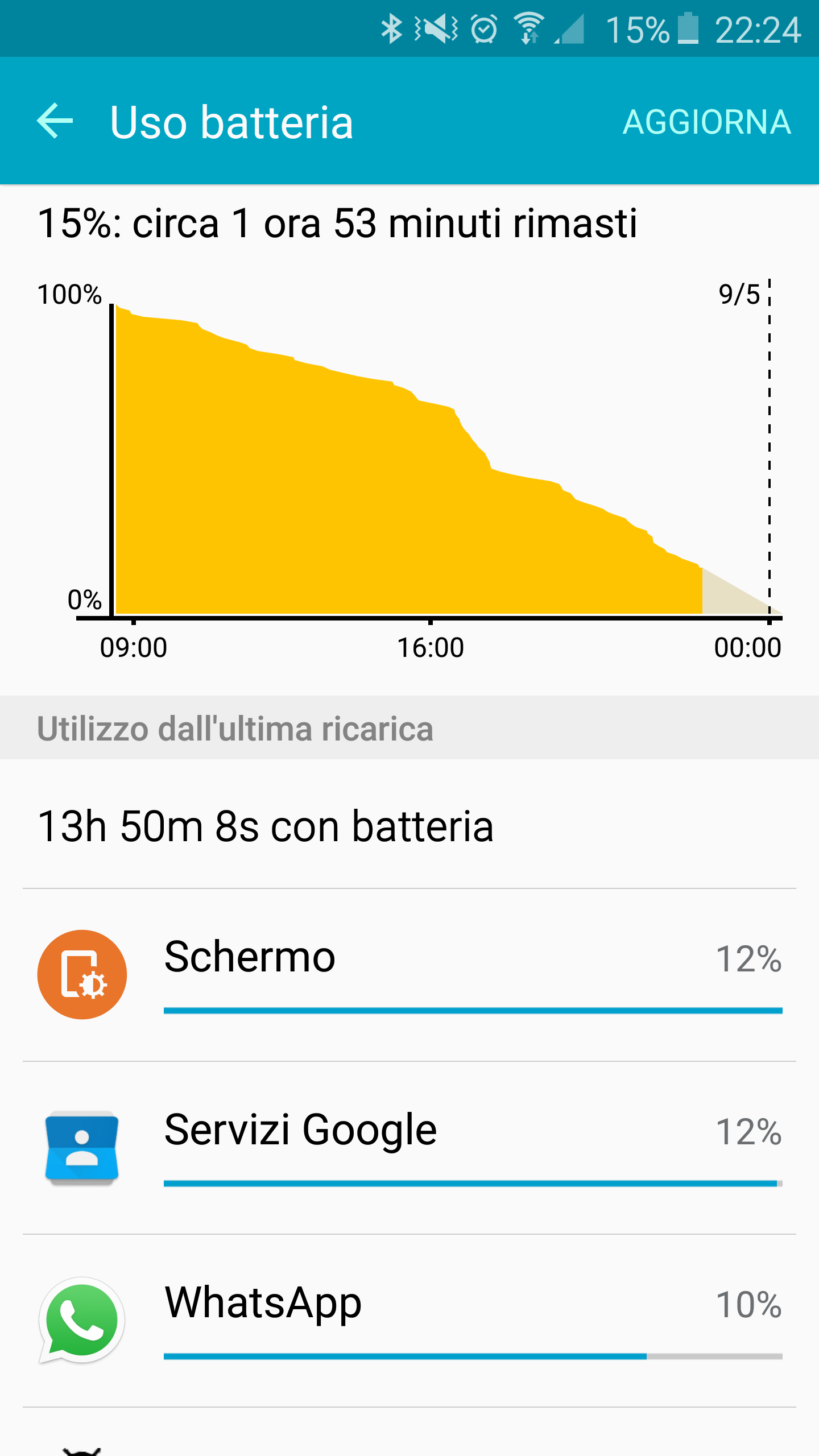 Tasto dolente? Non proprio, ma si poteva fare di meglio. La batteria da 2550 mAh di Galaxy S6 non è certo delle più capienti in circolazione e, vista la dotazione hardware e il software non sicuramente privo di animazioni e quant’altro, è senza ombra di dubbio sottodimensionata. La giornata lavorativa viene coperta senza troppi problemi con un utilizzo moderato arrivando a circa 3 ore di schermo acceso; quando si va a chiedere qualcosa in più, la potenza del processore si fa sentire, ma la batteria ne risente parecchio.